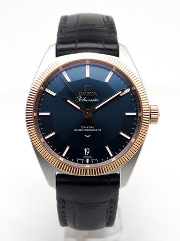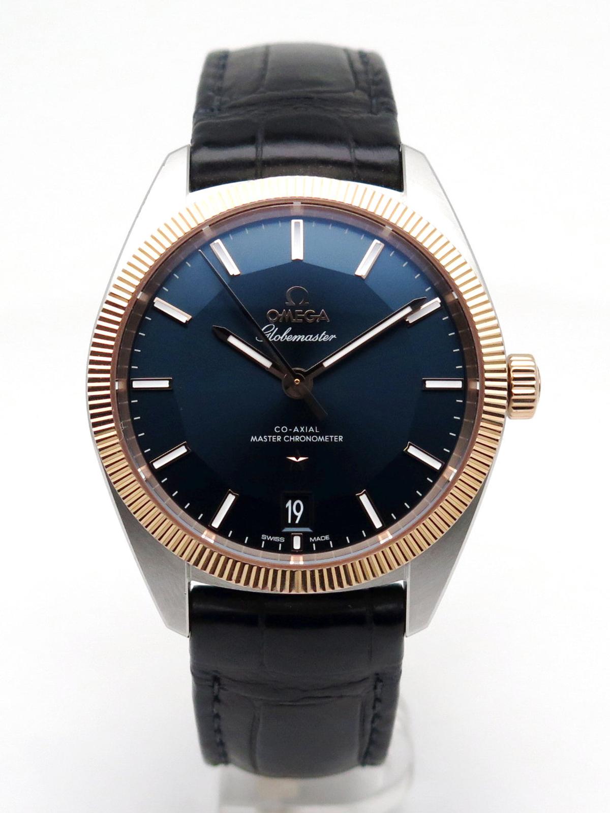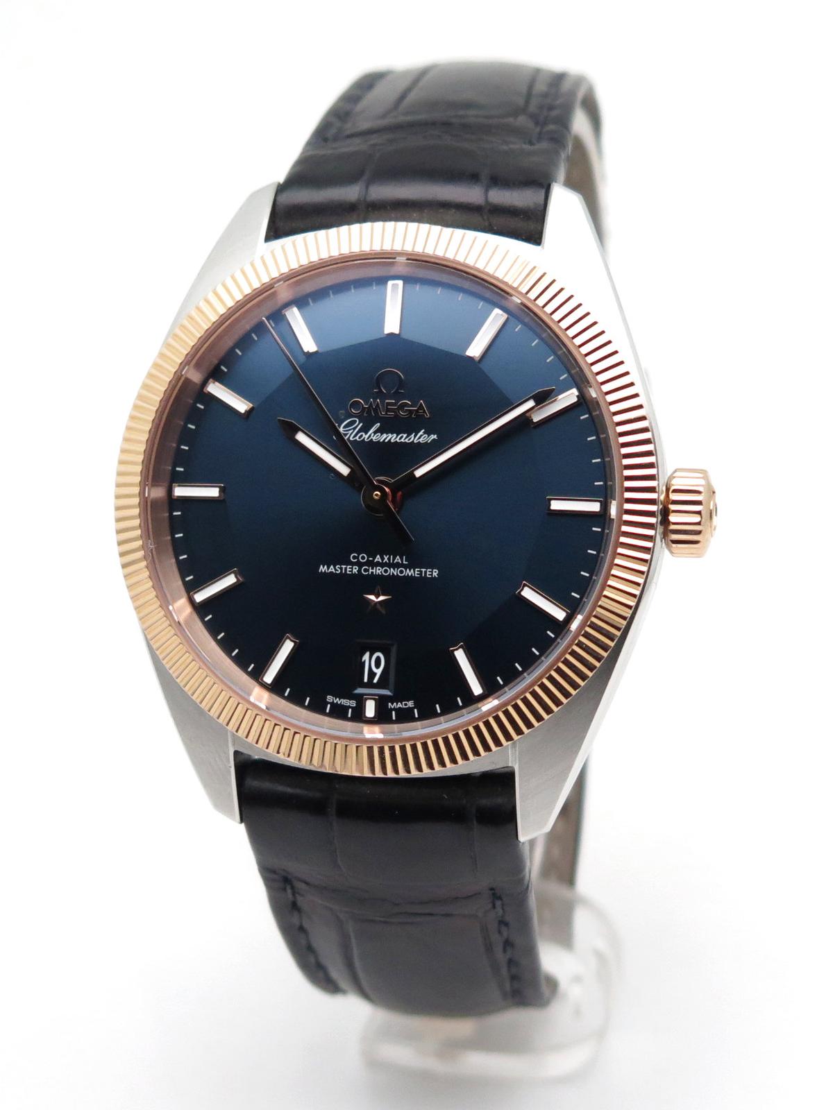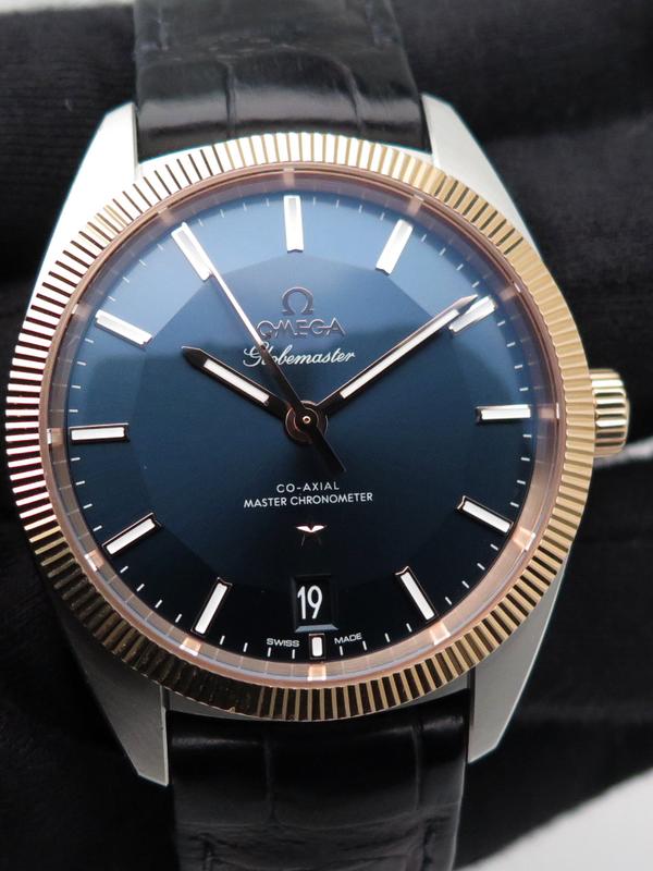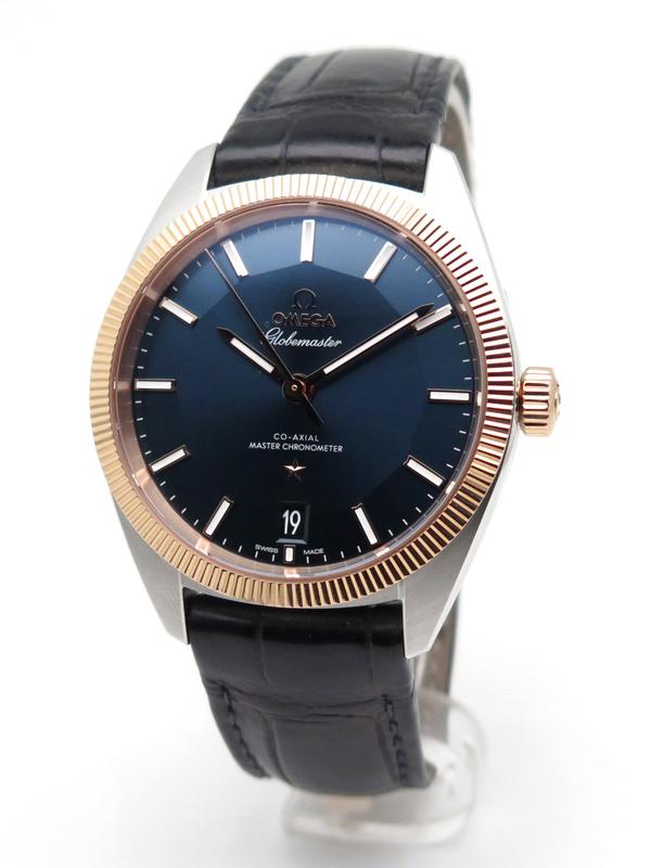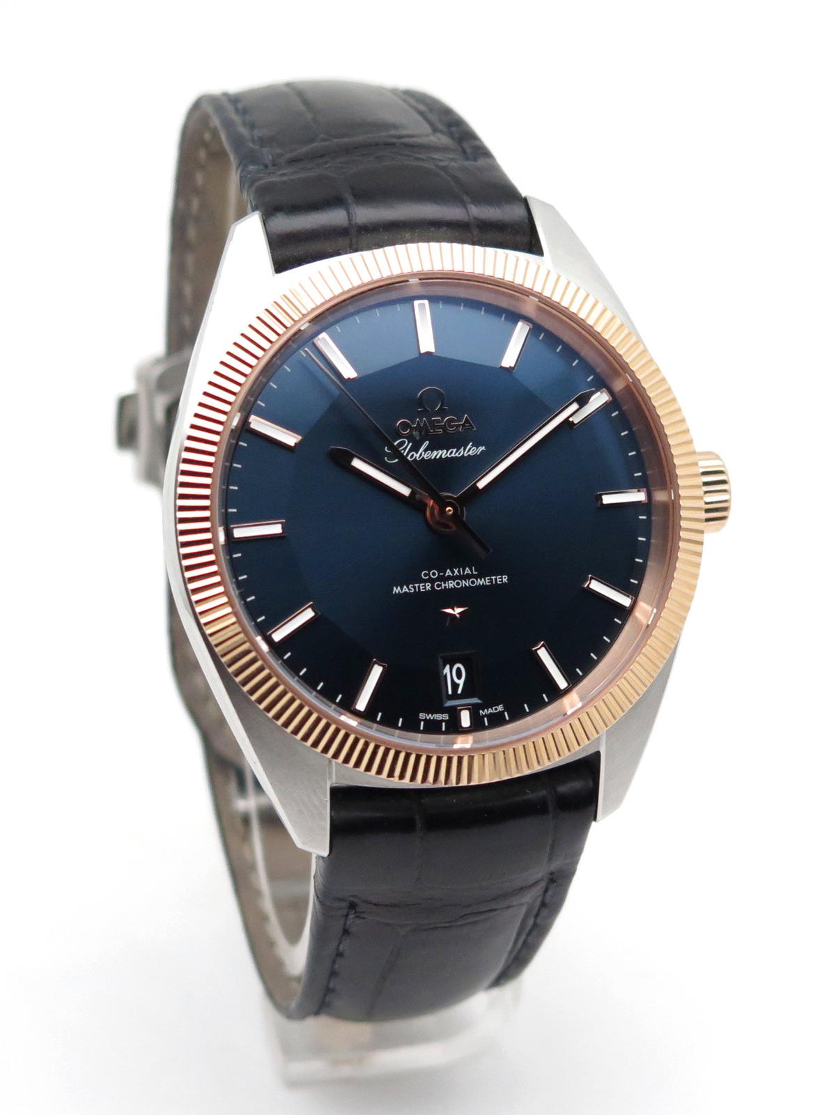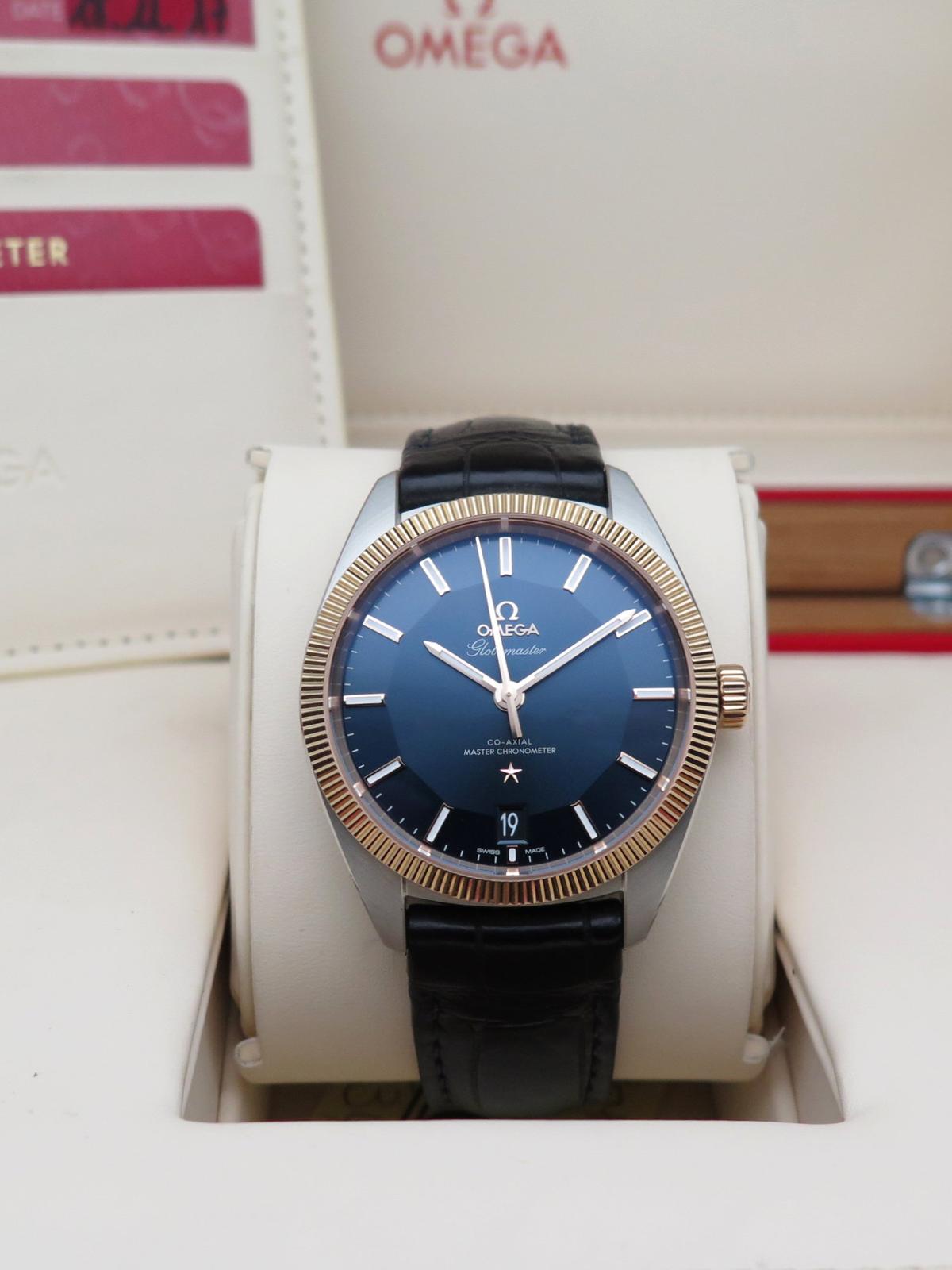 Globemaster sedna gold and steel fullset - Ref 130.23.39.21.03.001 Steel case on leather strap with Omega folding clasp, sunray blue pan pie dial with maxi rose gold indexes, rose gold bezel and crown, sapphire glass and back, co-axial automatic movement caliber 8900, 39mm diameter, delivered with original Omega box and papers, superb elegant piece with lots of character!