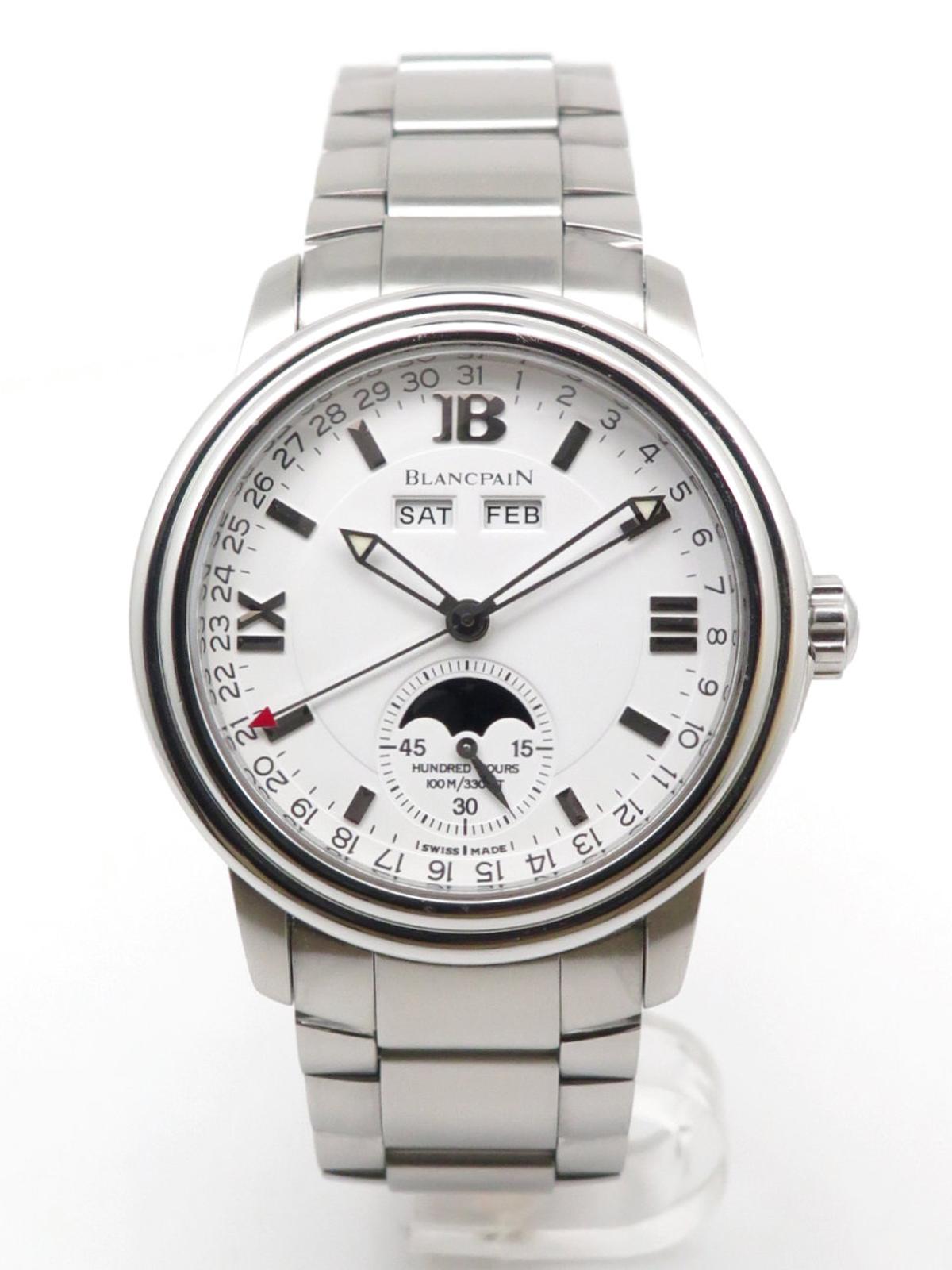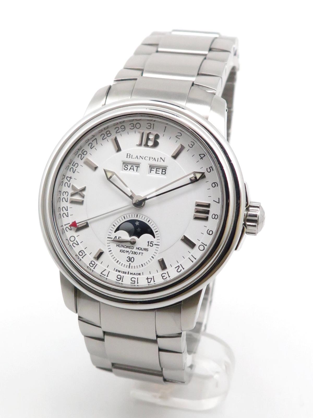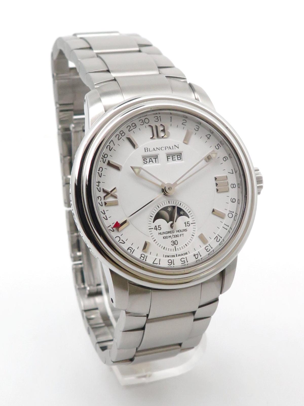 Rare Léman Moonphase Complete Calendar Full set - Ref 2763-1127 Steel case on steel bracelet with Blancpain double deployant, white dial, stick indexes and Roman numerals, moon phase, day, month, date, small seconds, screw-down crown, sapphire crystal, automatic movement caliber 6763 100 h power reserve. Delivered with original Blancpain box and papers, the truly beautiful Blancpains with a timeless size, unbeatable complications price ratio !!