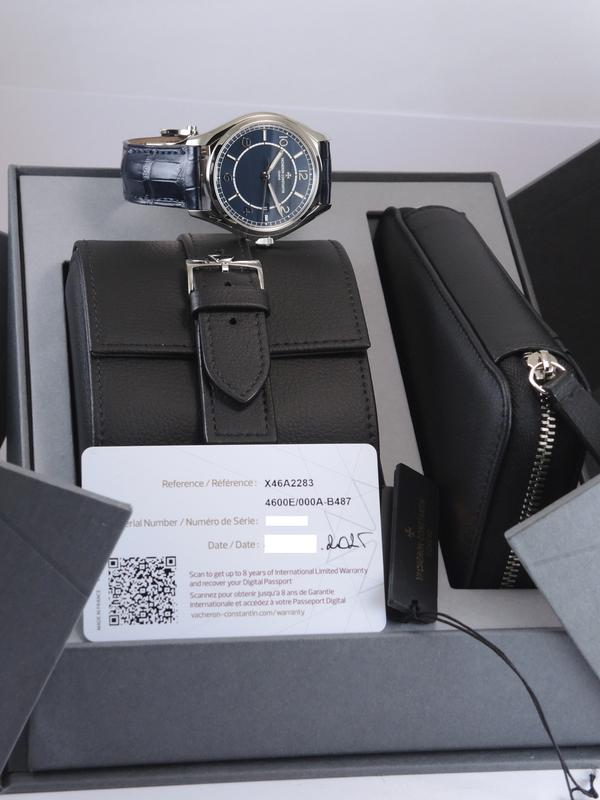 Fifty-Six Blue 4600E/000A-B487 Full Set 2025 - Steel case on leather strap, original folding buckle, blue dial with applied arabic numerals, date, sapphire glass and caseback automatic movement. With original box and papers, full set!