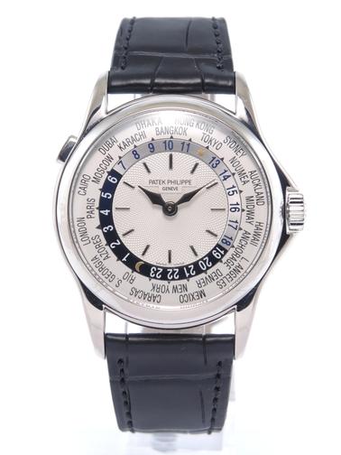 Worldtime 5110 G With Extract From The Archives Or blanc sur bracelet cuir avec boucle ardillon, cadran blanc guilloché, disque 24 villes fuseaux horaires, disque indicateur 24 heures, poussoir unique permettant le changement de toutes ses fonctions, mouvement automatique avec micro-rotor Patek Philippe en or Calibre 240 HU, fond transparent. Avec extrait des archives. Inspirée par les premières montres-bracelet worldtime des années 1930, la référence 5110 fut lancée en 2000 et était la première montre-bracelet worldtime proposée par Patek Philippe depuis 1965. Dotée d'un ingénieux poussoir permettant d'ajuster la zone horaire, cette montre est capable de donner l'heure dans 24 villes. La référence 5110, dont la popularité ne cesse d'augmenter, fut produite jusque 2006 et ensuite remplacée par la référence 5130. 29 950 €
