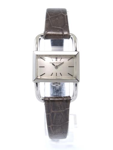 New Jaeger Le Coultre Etrier Acier Vintage Boitier acier sur bracelet cuir, boucle ardillon, 23 x 35 mm, cadran argenté brossé, indexes bâtons appliqués, verre minéral, couronne d'origine, mouvement mécanique à remontage manuel. 1 450 € Bruxelles