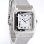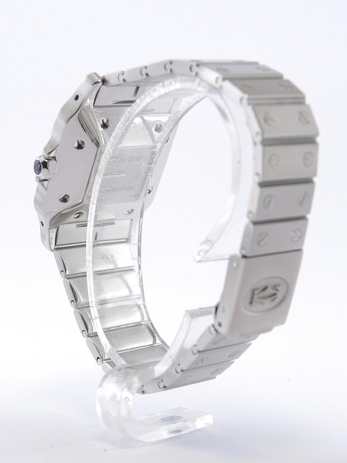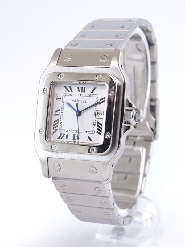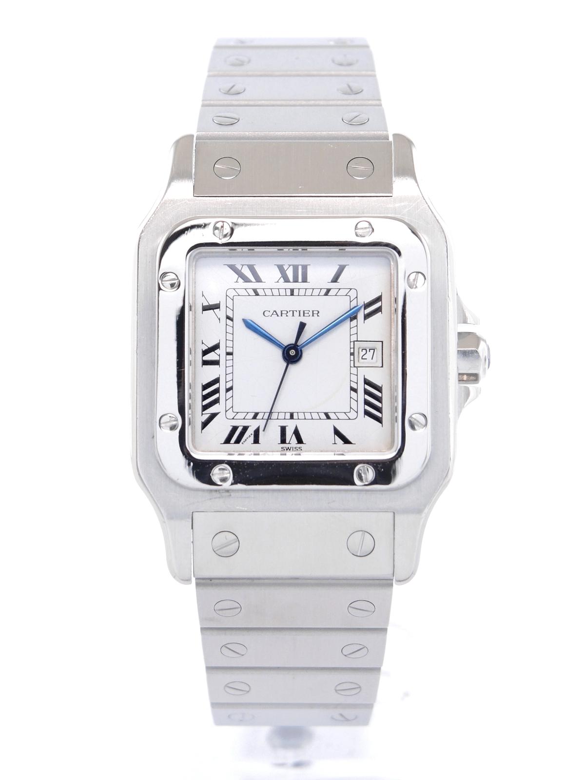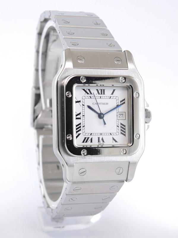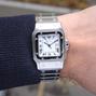 Santos Galbée 2960 - Complet acier, 29 x 41 mm, cadran blanc, index chiffres romains, chemin de fer, date, aiguilles "glaives" bleuies, verre saphir, mouvement automatique.
