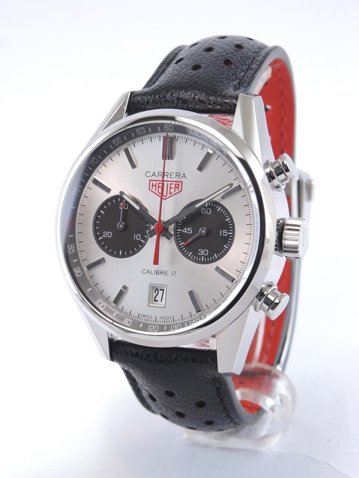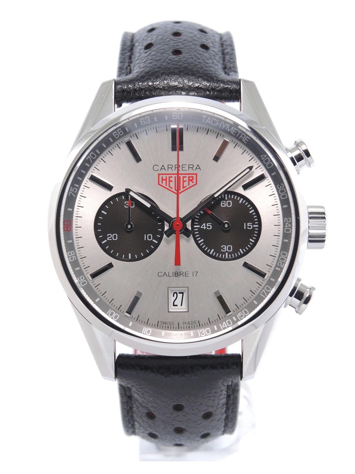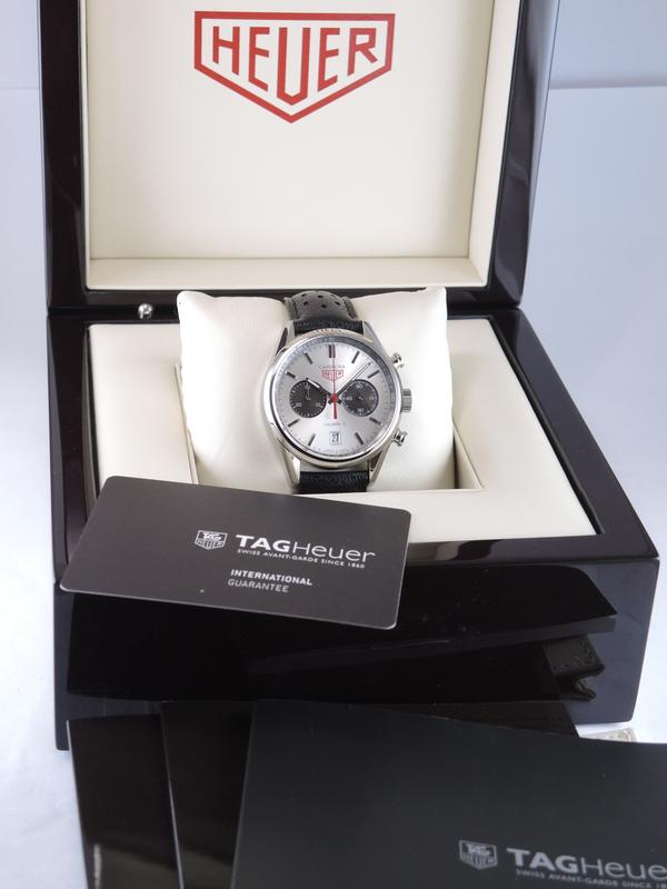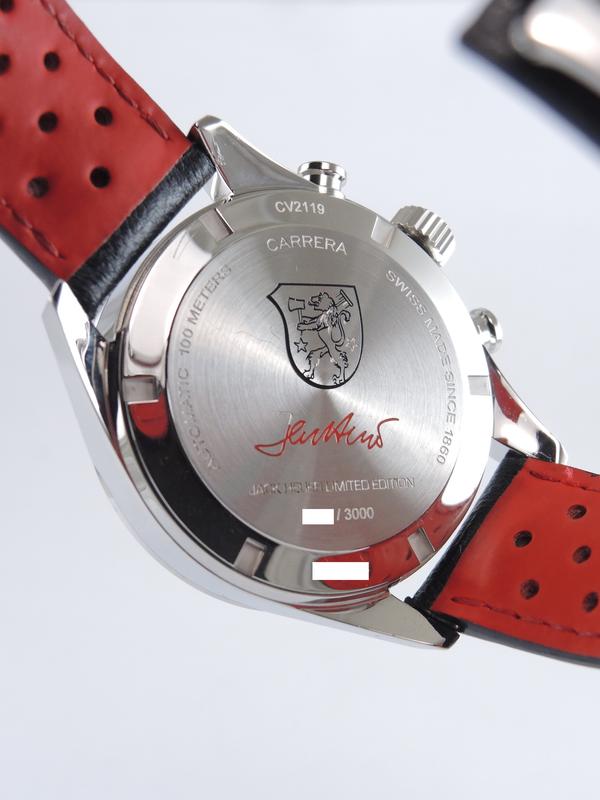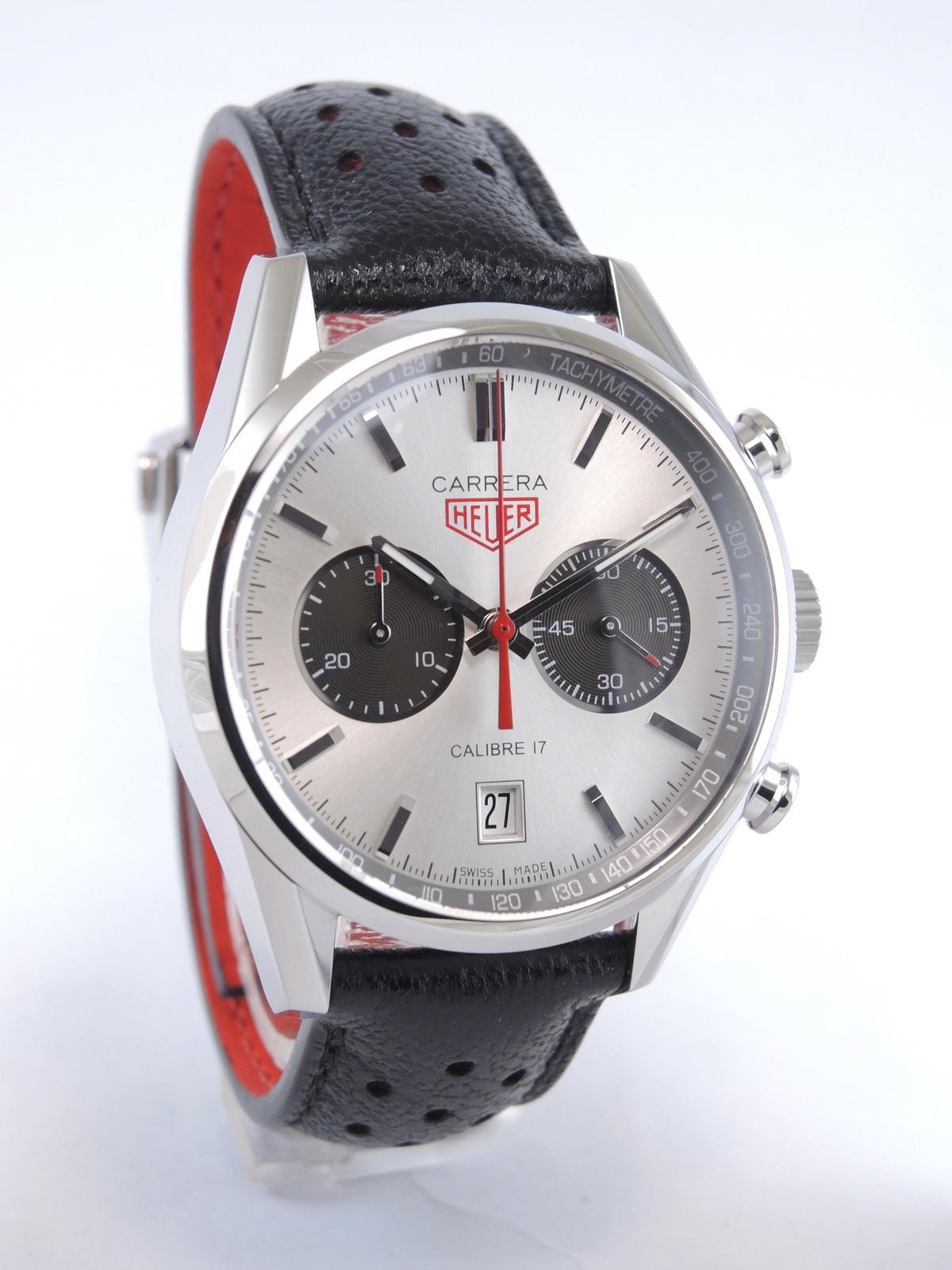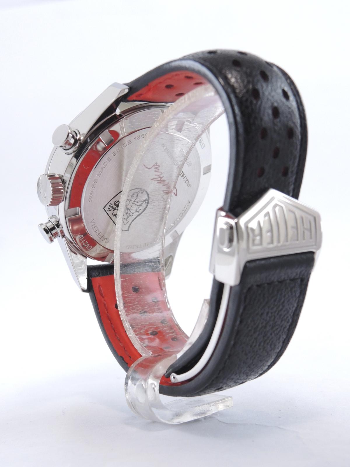 Carrera "Jack Heuer" CV2119 Full Set Limited Edition - Boitier acier sur bracelet cuir, boucle déployante, cadran argenté soleillé, index bâtons appliqués, chronographe, deux compteurs, date, verre saphir, mouvement automatique, calibre 17. Avec boîte et papiers d'origine, set complet ! Edition spéciale Jack Heuer, limitée à 3000 exemplaires !