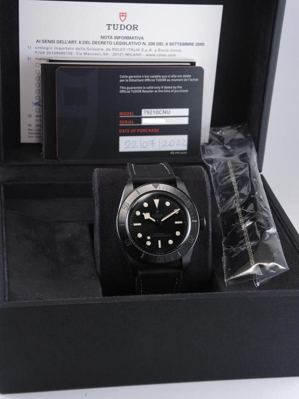 Black Bay Ceramic 79210CNU Full Set - Boitier céramique sur bracelet caoutchouc, boucle déployante, bracelet Nato supplémentaire, cadran noir, aiguilles snowflake, lunette rotative, couronne vissée, verre et fond de boîte saphir, mouvement automatique. Avec boîte et papiers d'origine, set complet !