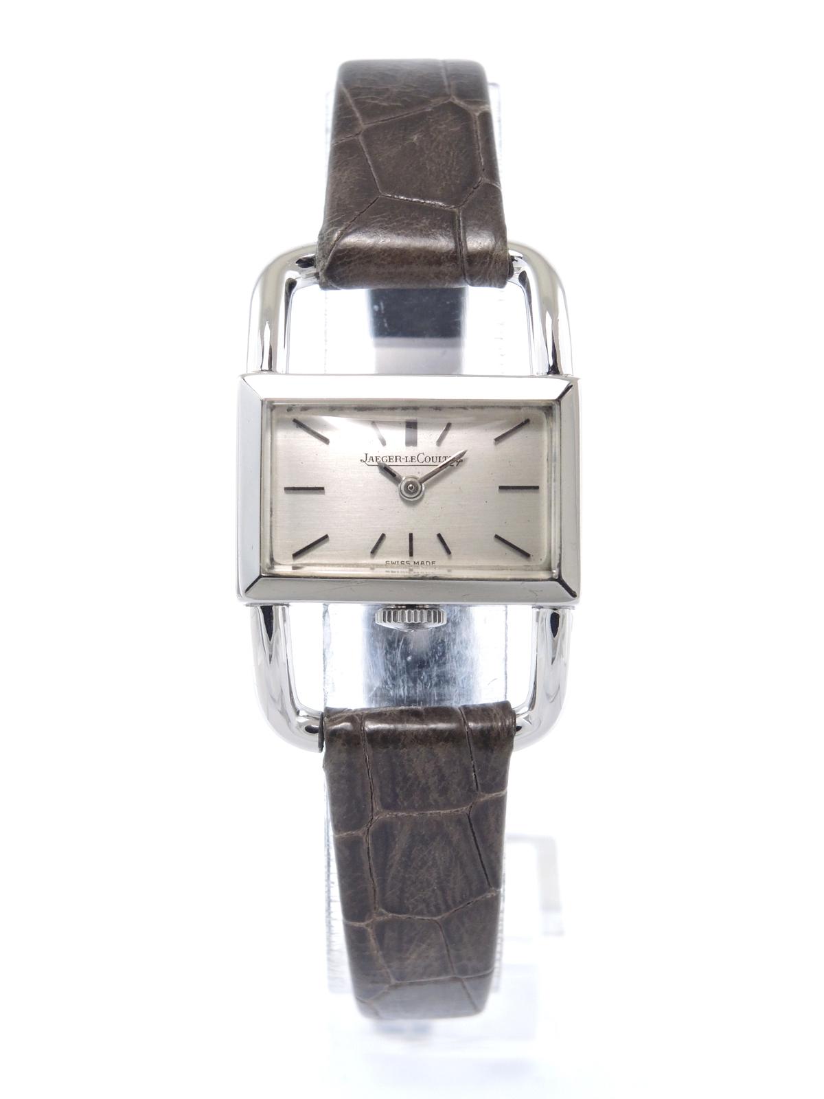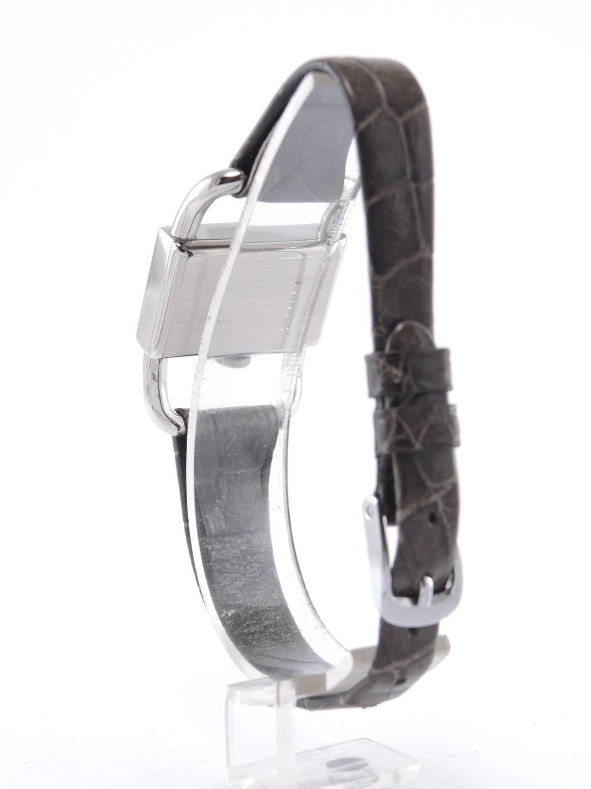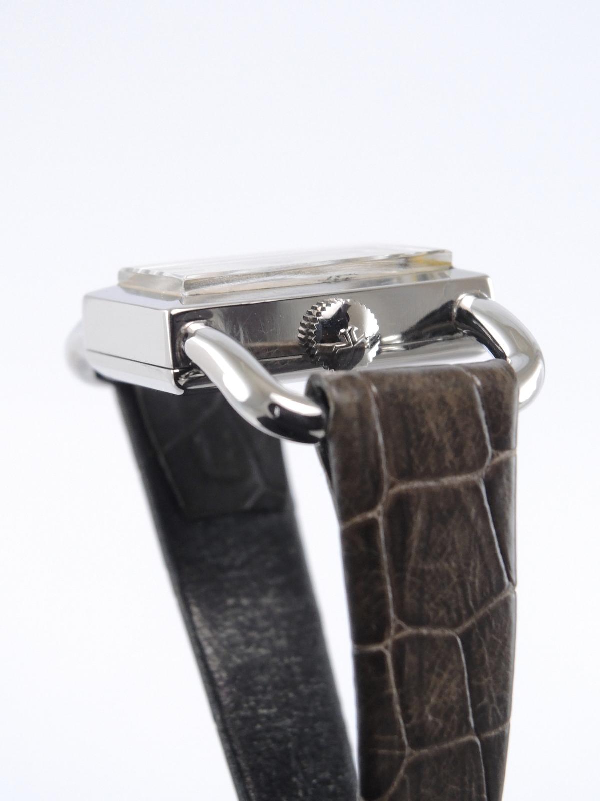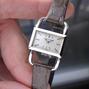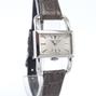 Etrier Acier Vintage - Boitier acier sur bracelet cuir, boucle ardillon, 23 x 35 mm, cadran argenté brossé, indexes bâtons appliqués, verre minéral, couronne d'origine, mouvement mécanique à remontage manuel.