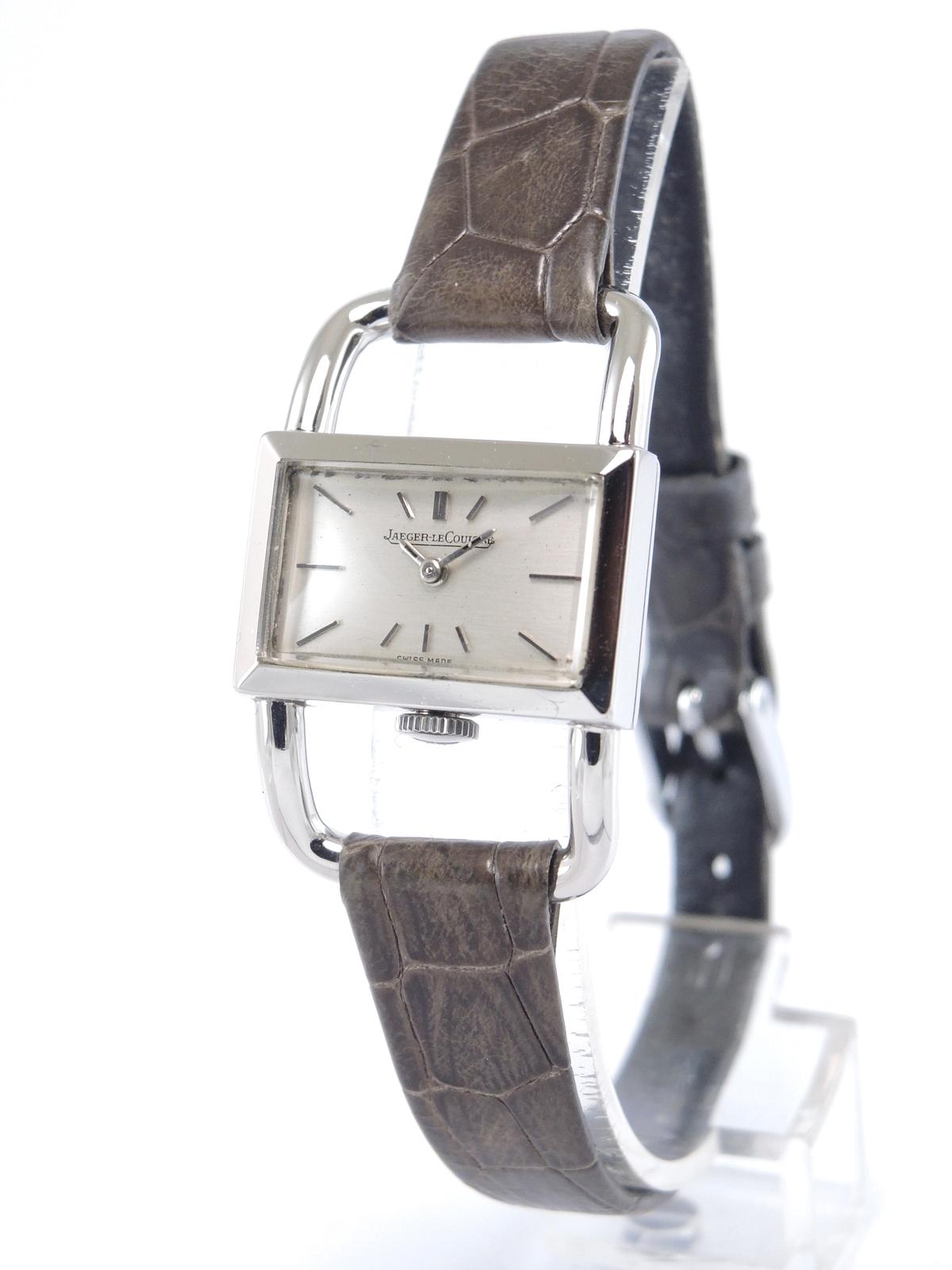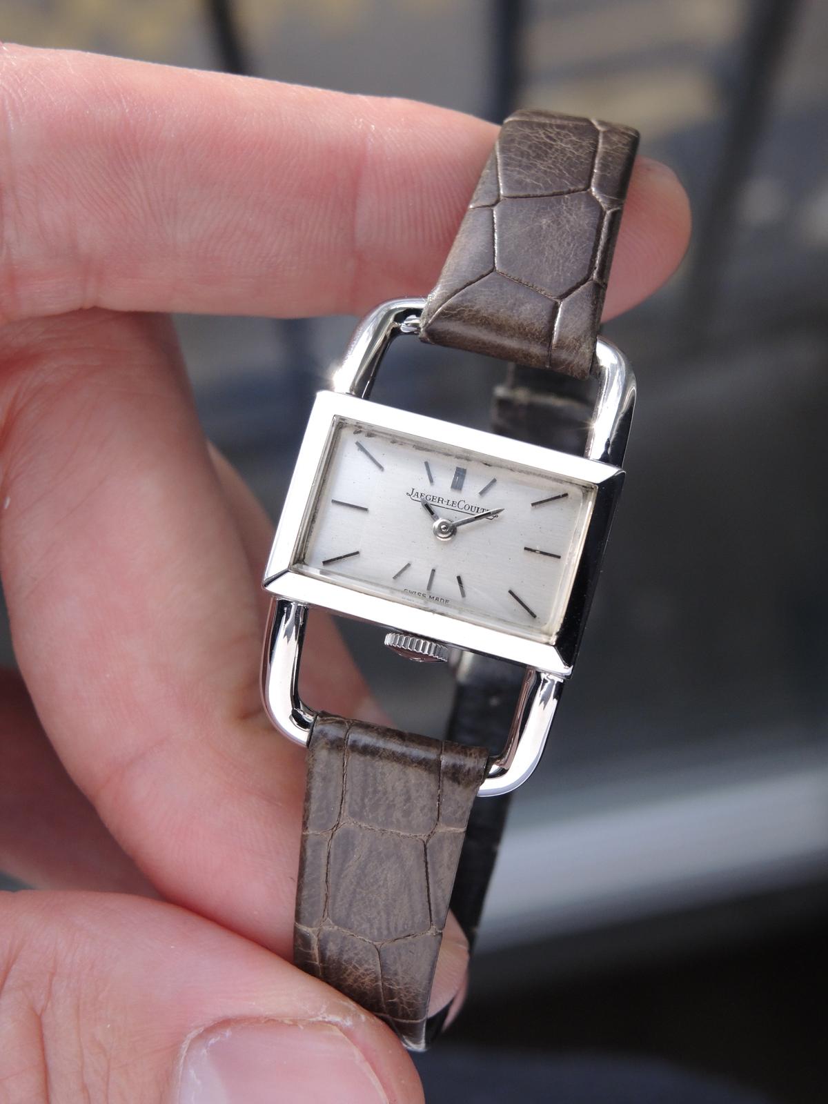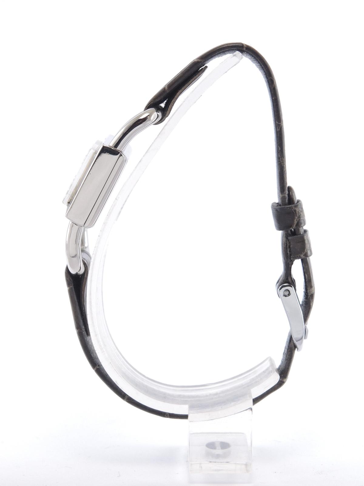 Etrier Acier Vintage - Boitier acier sur bracelet cuir, boucle ardillon, 23 x 35 mm, cadran argenté brossé, indexes bâtons appliqués, verre minéral, couronne d'origine, mouvement mécanique à remontage manuel.