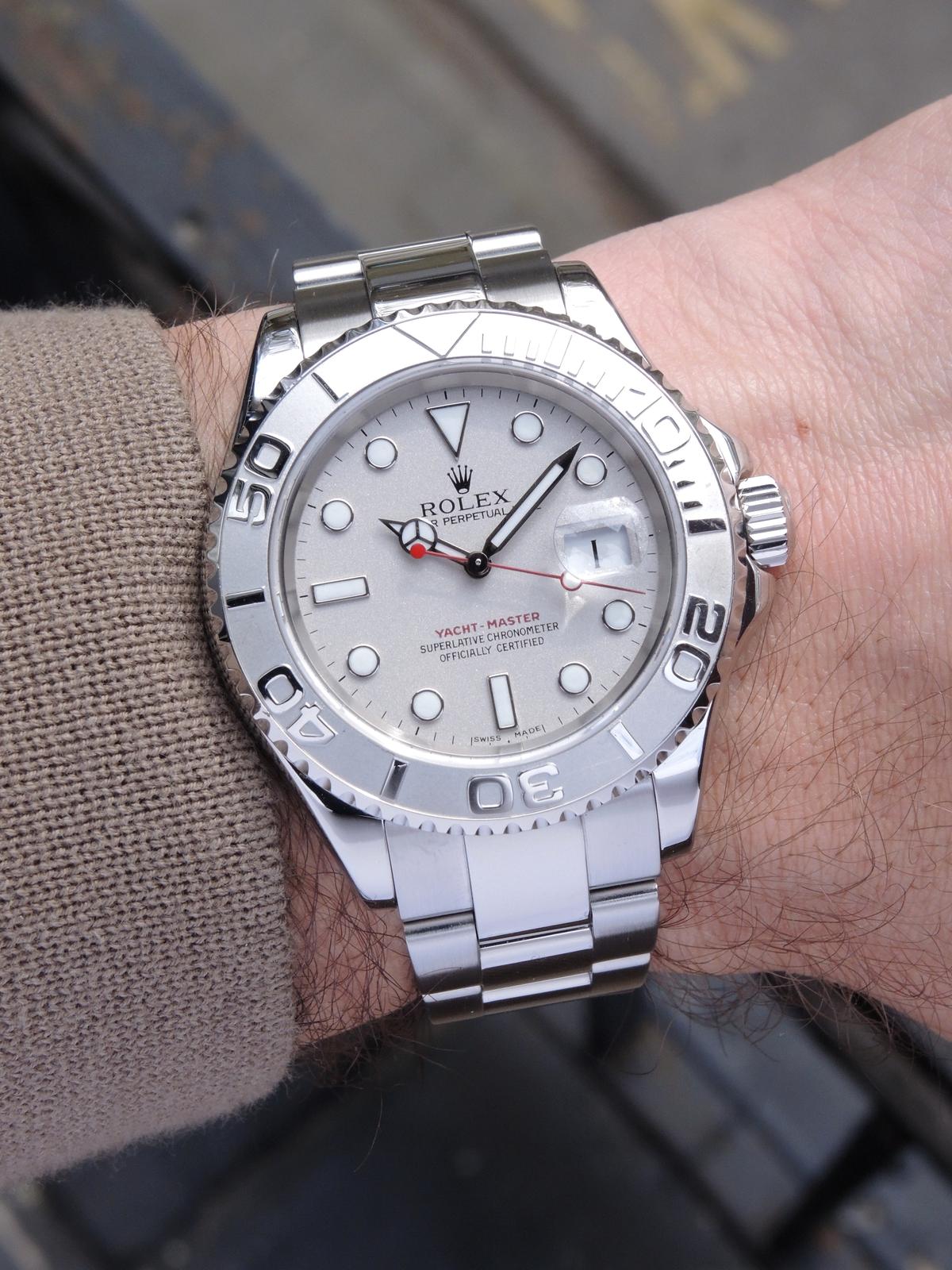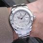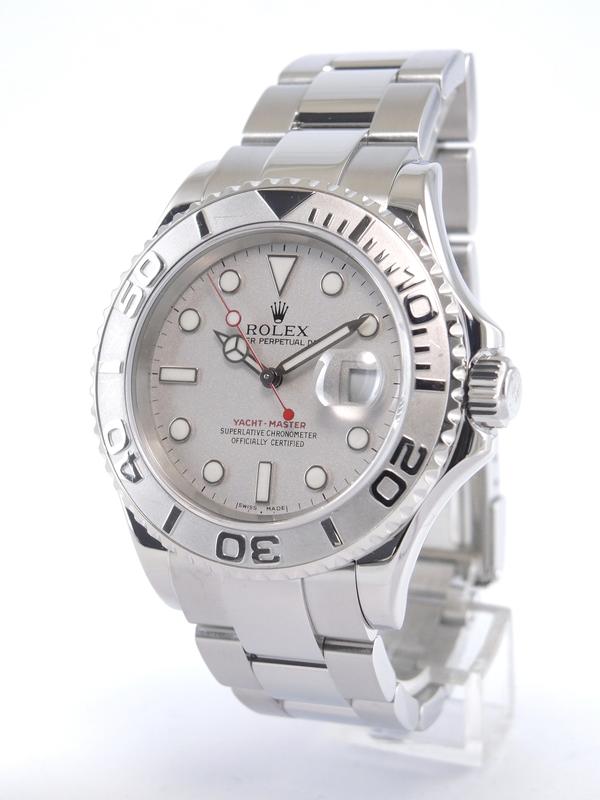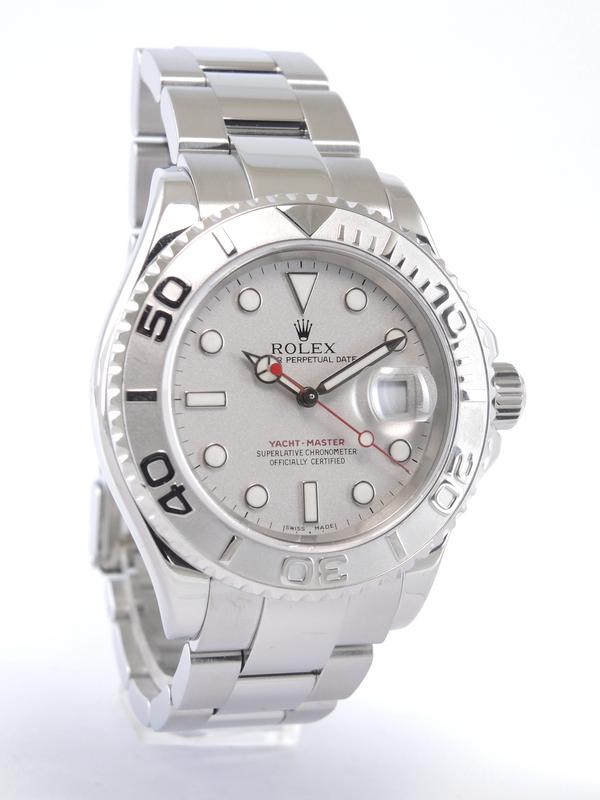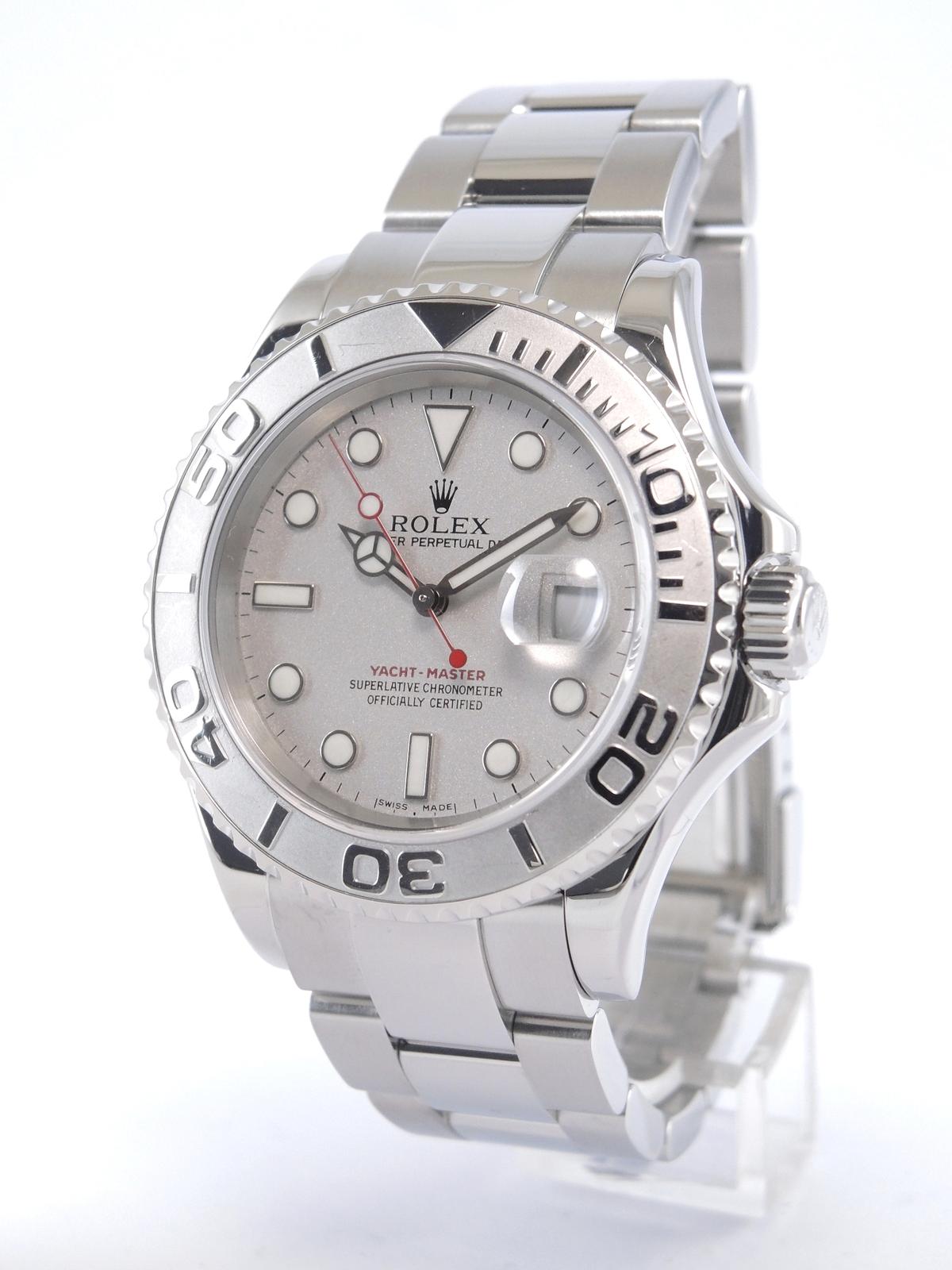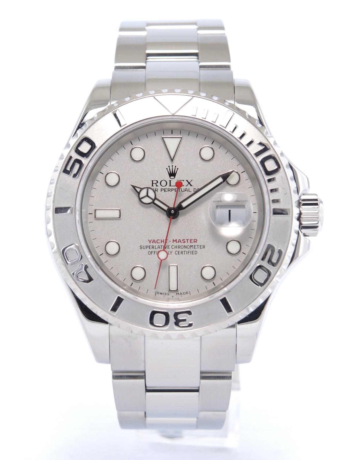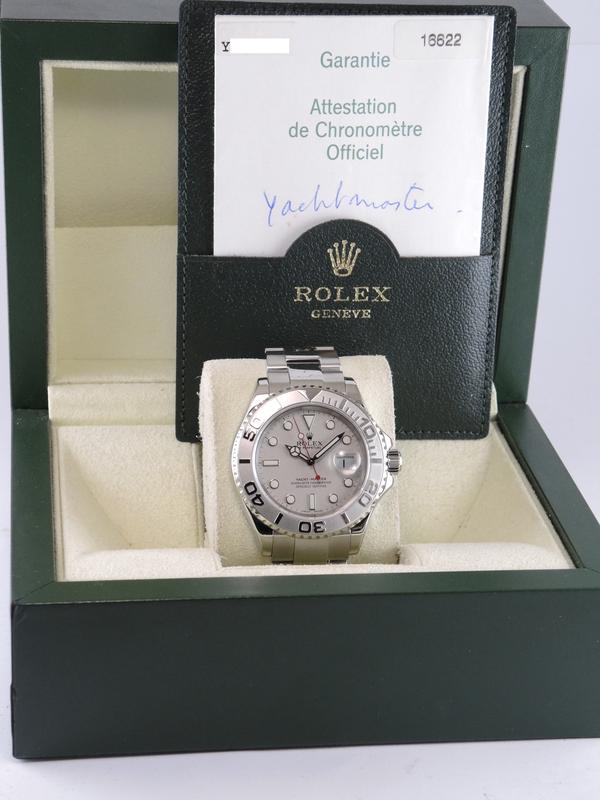 Yacht Master 16622 Full Set - Complet acier, bracelet Oyster, cadran sablé argenté, aiguilles et index luminescents, date, lunette en platine, verre saphir, mouvement automatique certifié chronomètre (COSC). Avec boîte et papiers d'origine, set complet !