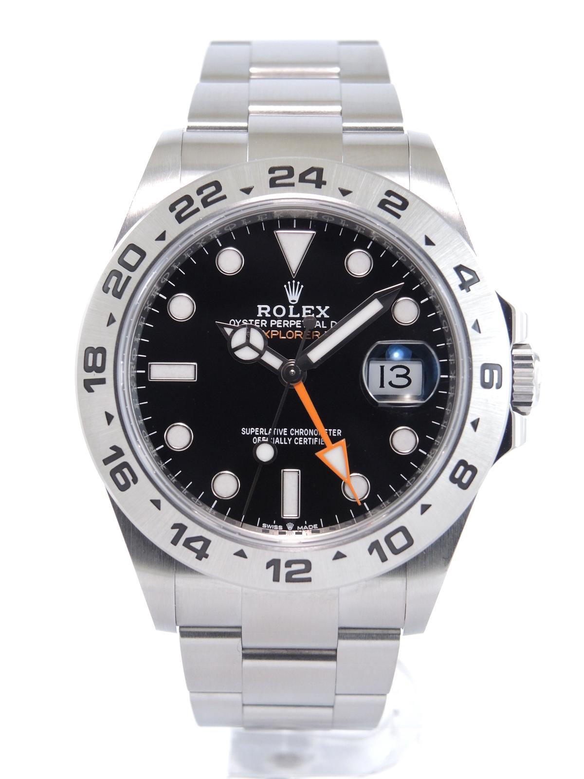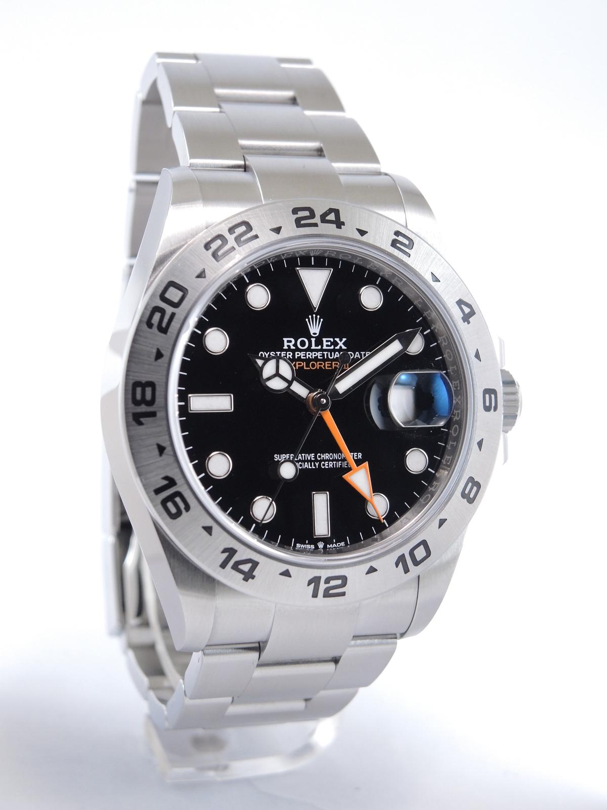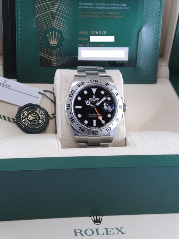 Explorer II 226570 Full set - Complet acier, bracelet Oyster, cadran noir, aiguilles et index luminescents, lunette graduée 24H, date, verre saphir, couronne vissée, mouvement automatique certifié chronomètre (COSC). Livrée avec boîte , sur boite et papiers d'origine, set complet ! Garantie internationale Rolex jusqu'en 2027.