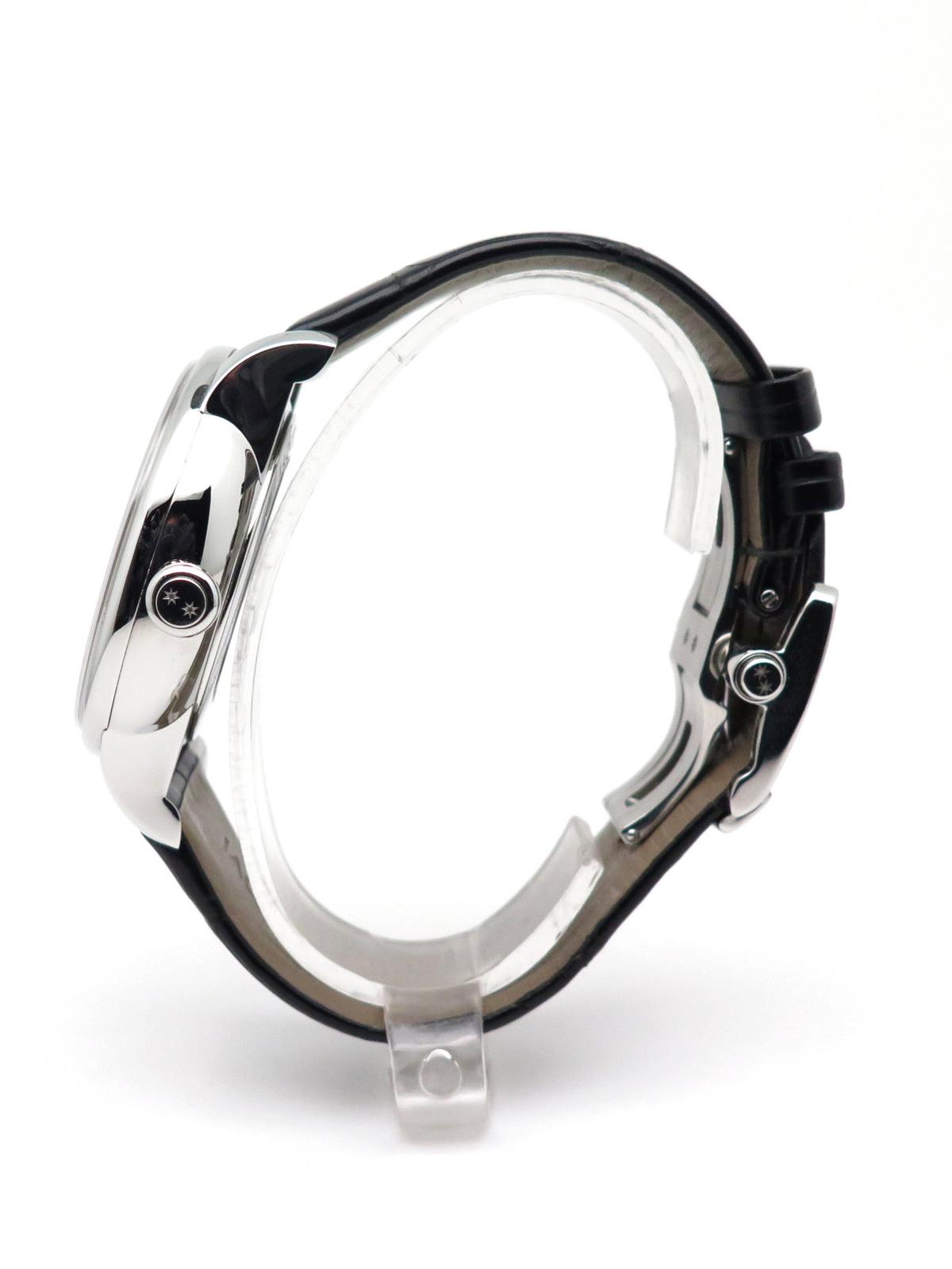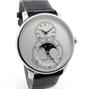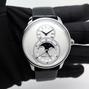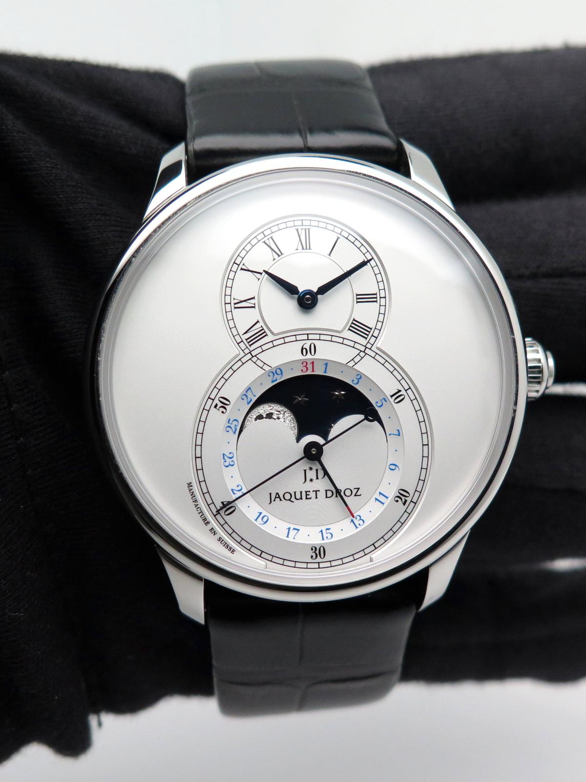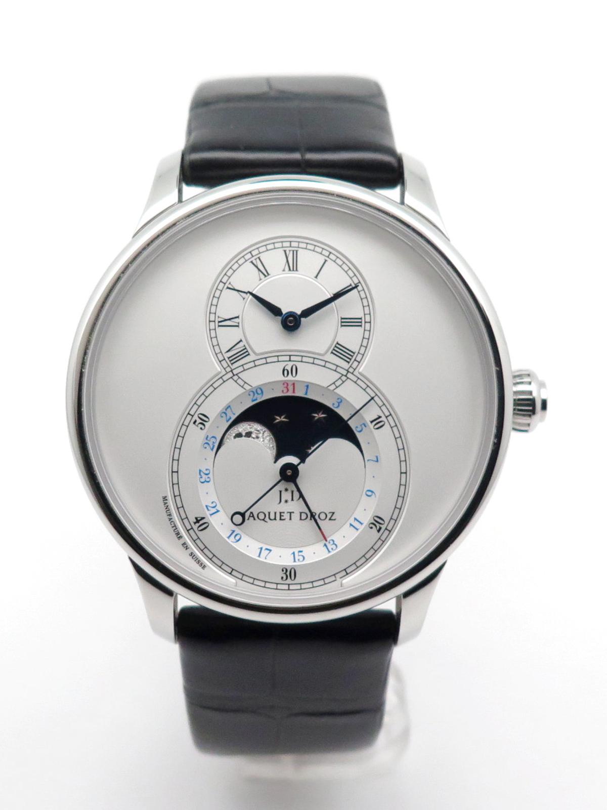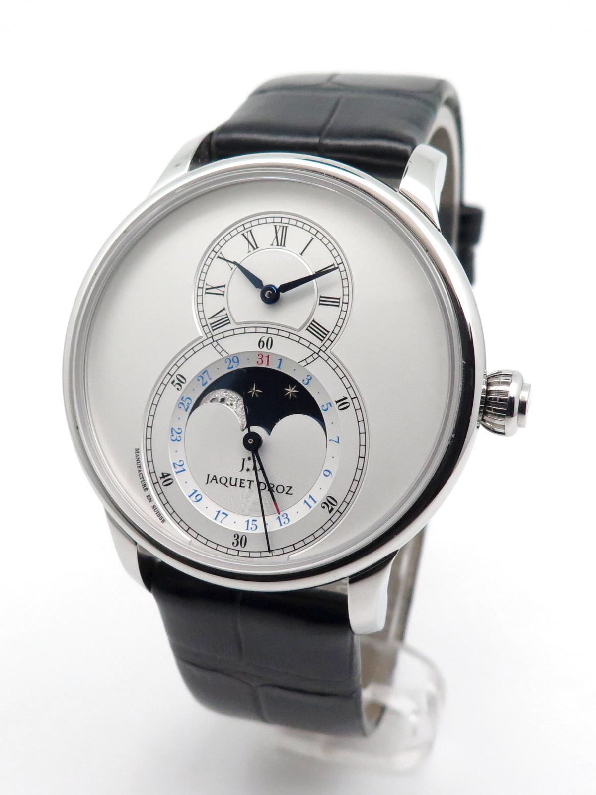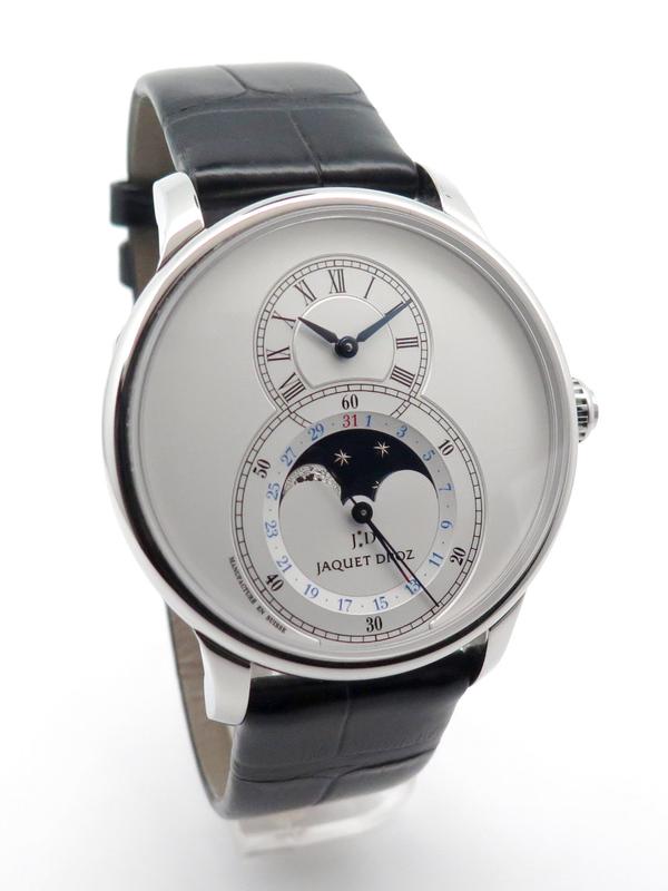 Grande seconde Moon full set - Ref J007530240 Steel case on black crocodile strap with double folding clasp, opaline white dial, hour and minute indicator at 12 o'clock, large seconds with calendar and moon phase at 6 o'clock, sapphire crystal and back, automatic movement, delivered with box, on box, original papers, impeccable condition.