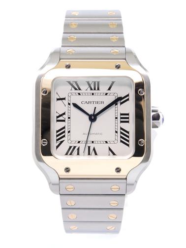 New Cartier Santos Moyen Modèle W2SA0016 Full Set 2025 Full yellow gold and steel, 35 x 42 mm, silver dial, roman numeral markers, chapter ring, blued hands, sapphire glass, automatic movement. With original box and papers, full set! 8 950 € Paris