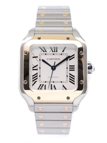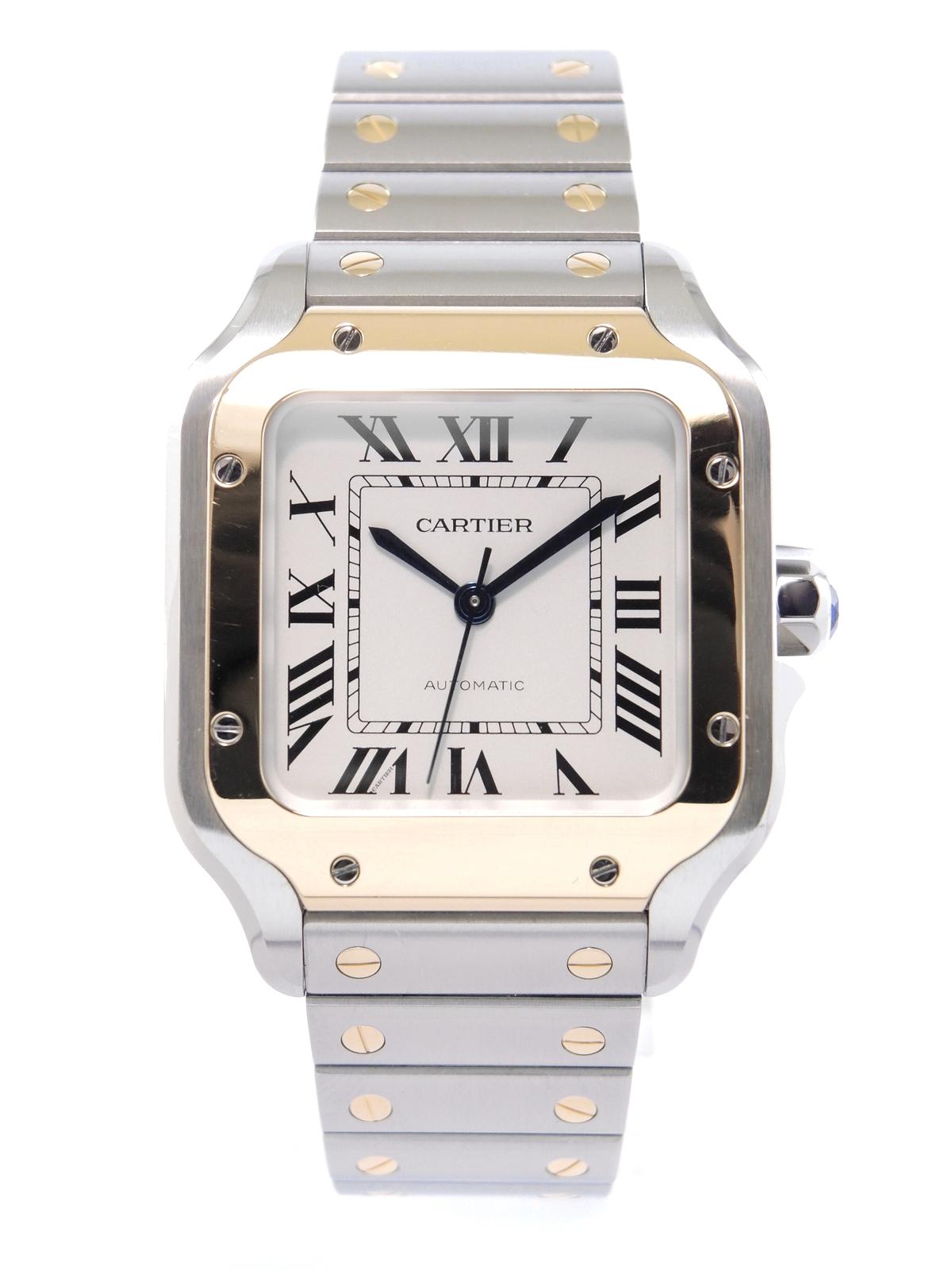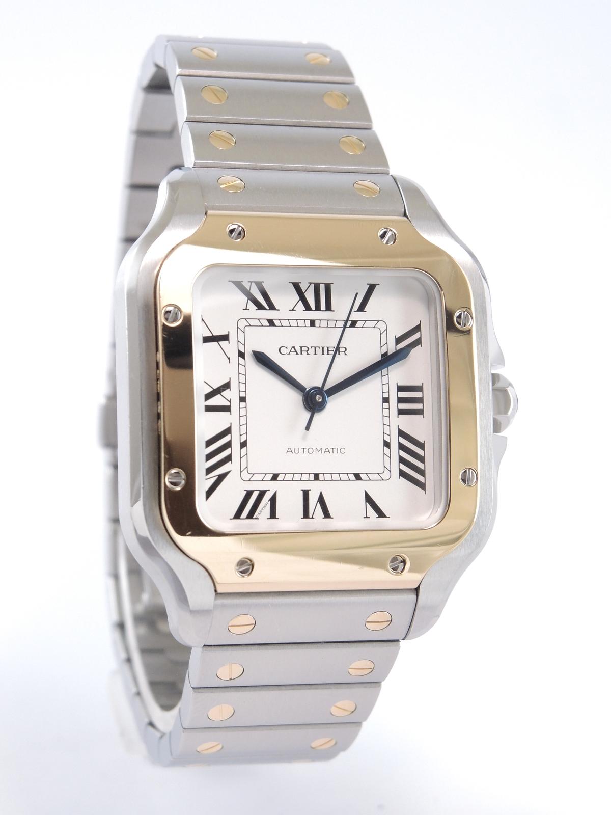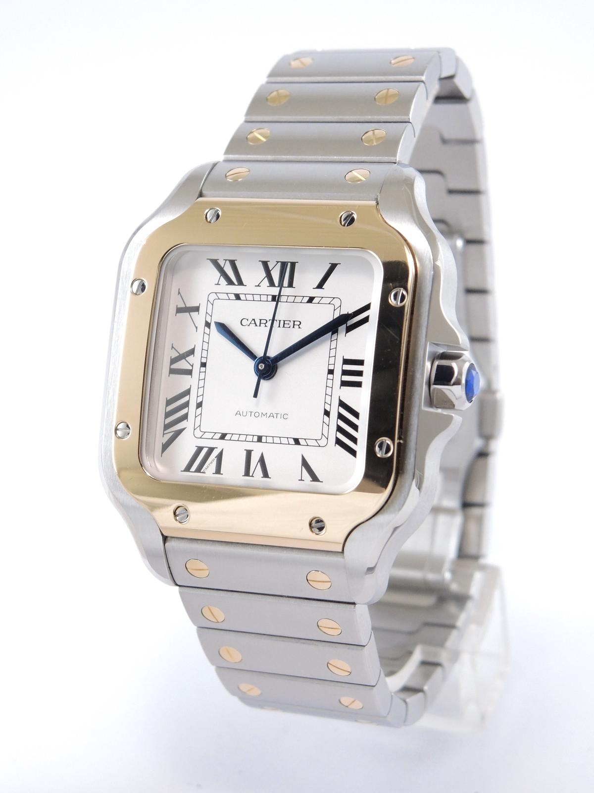 Santos Moyen Modèle W2SA0016 Full Set 2025 - Full yellow gold and steel, 35 x 42 mm, silver dial, roman numeral markers, chapter ring, blued hands, sapphire glass, automatic movement. With original box and papers, full set!