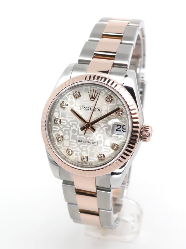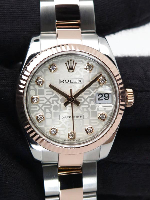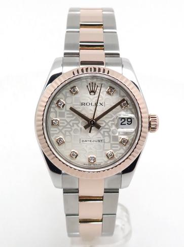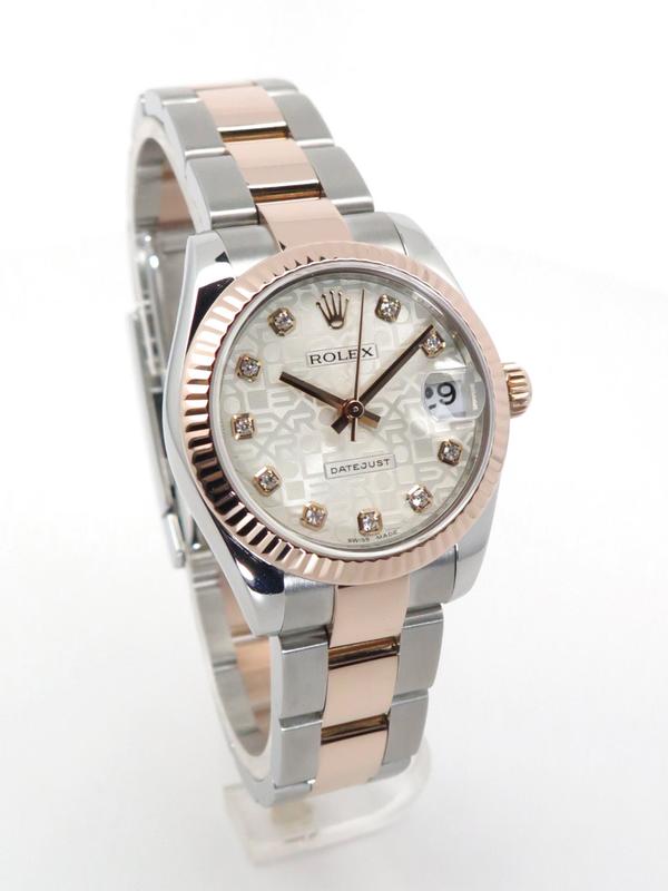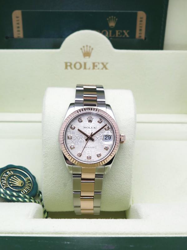 Datejust 31 178271 Full set - Rose gold steel case on rose gold steel oyster bracelet, silver Jubile dial with diamond indexes, fluted rose gold bezel, sapphire crystal, automatic movement, delivered with original Rolex box and papers.