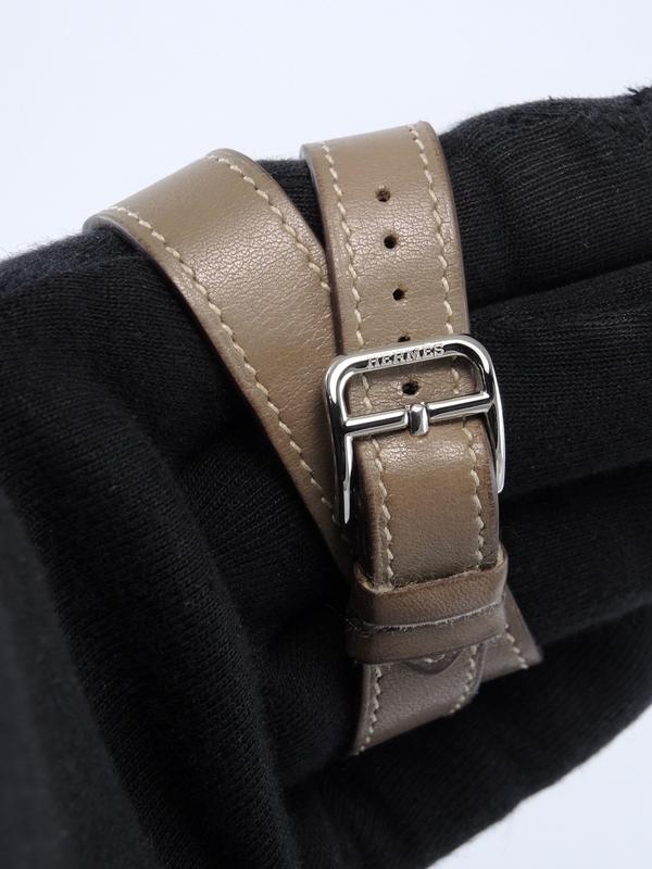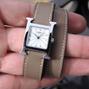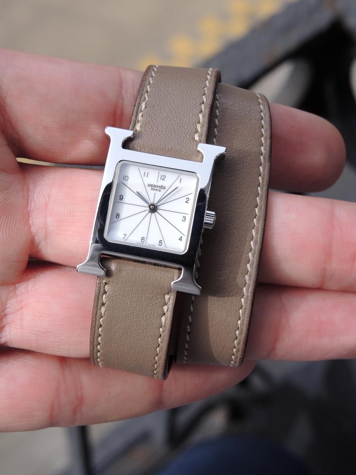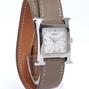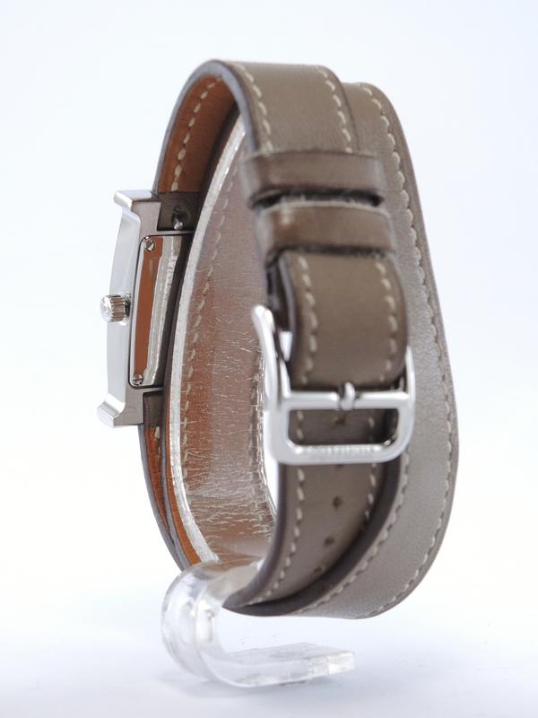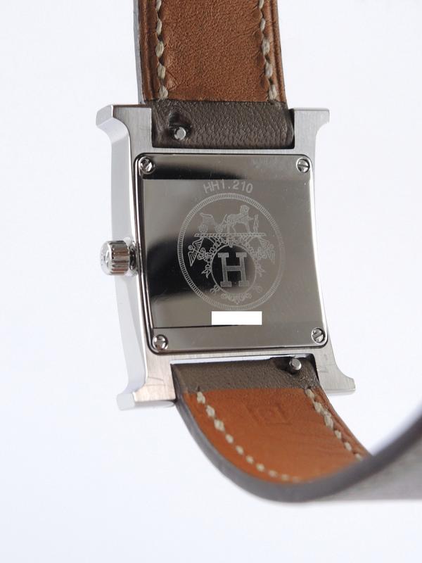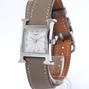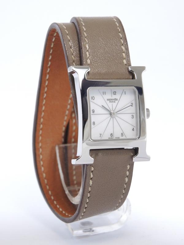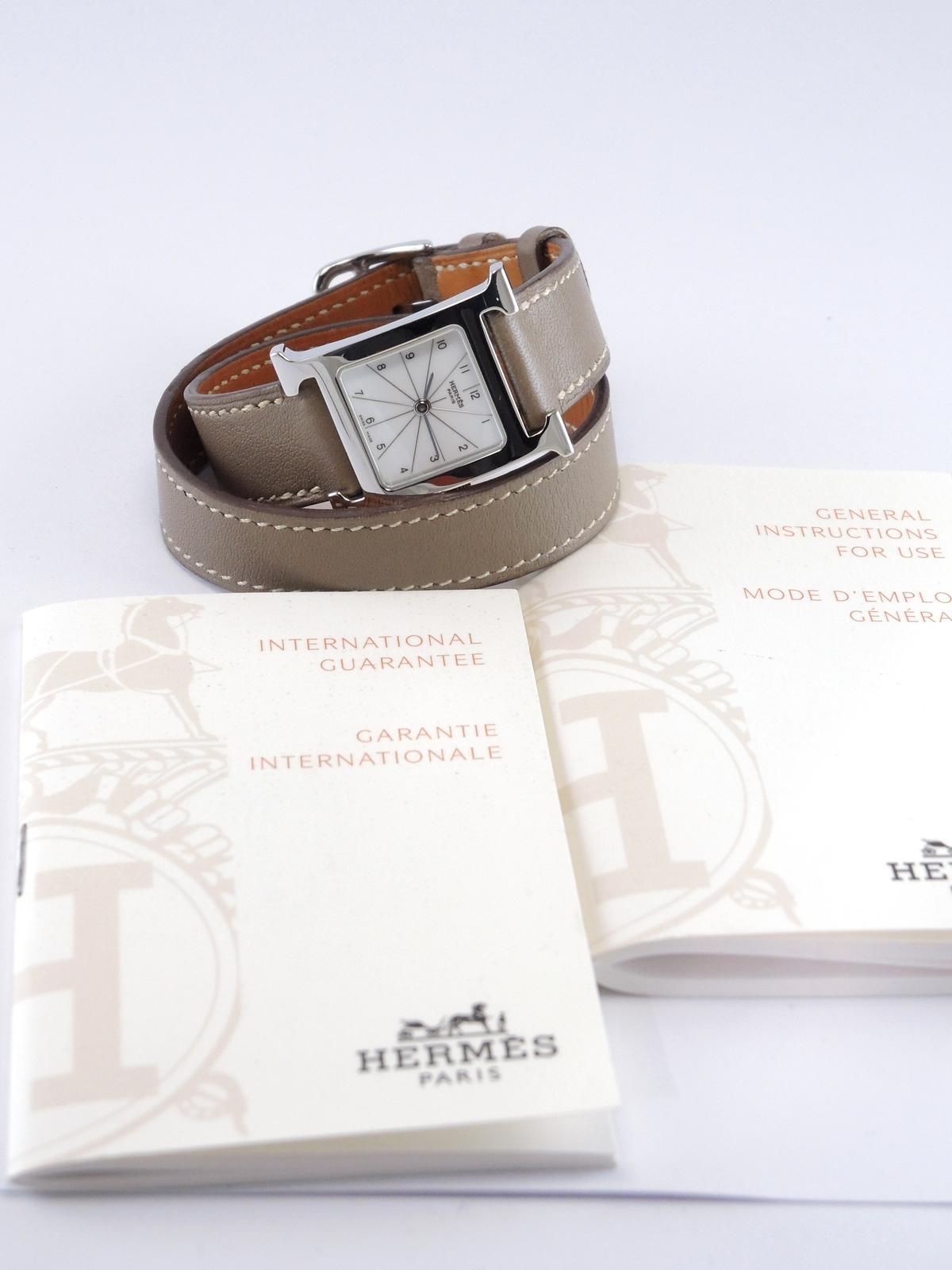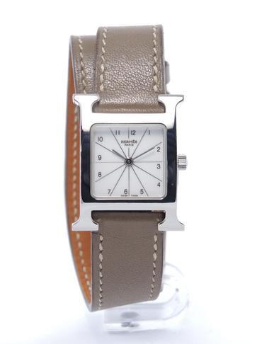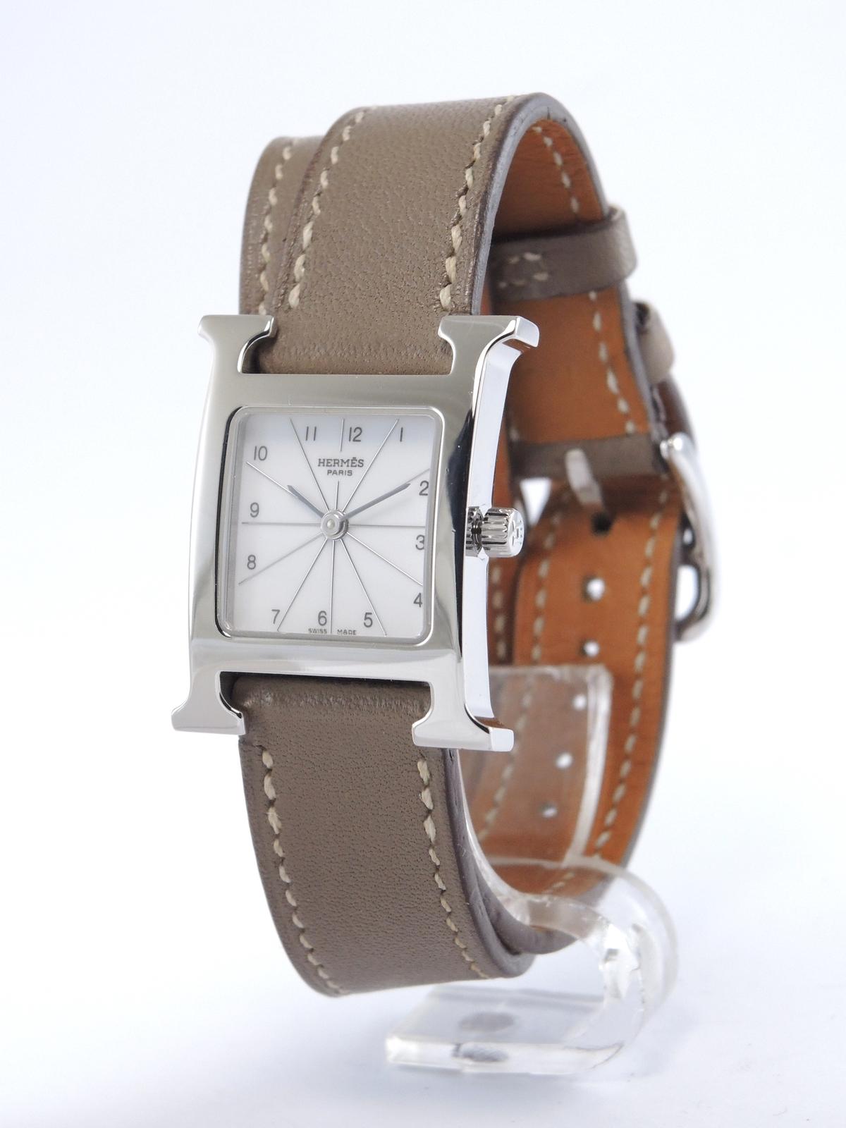 Heure H with Original Certificate - Steel case on Hermès strap, 21 x 30 mm, original pin buckle, white dial with arabic numeral markers, sapphire glass, quartz movement. With original papers.