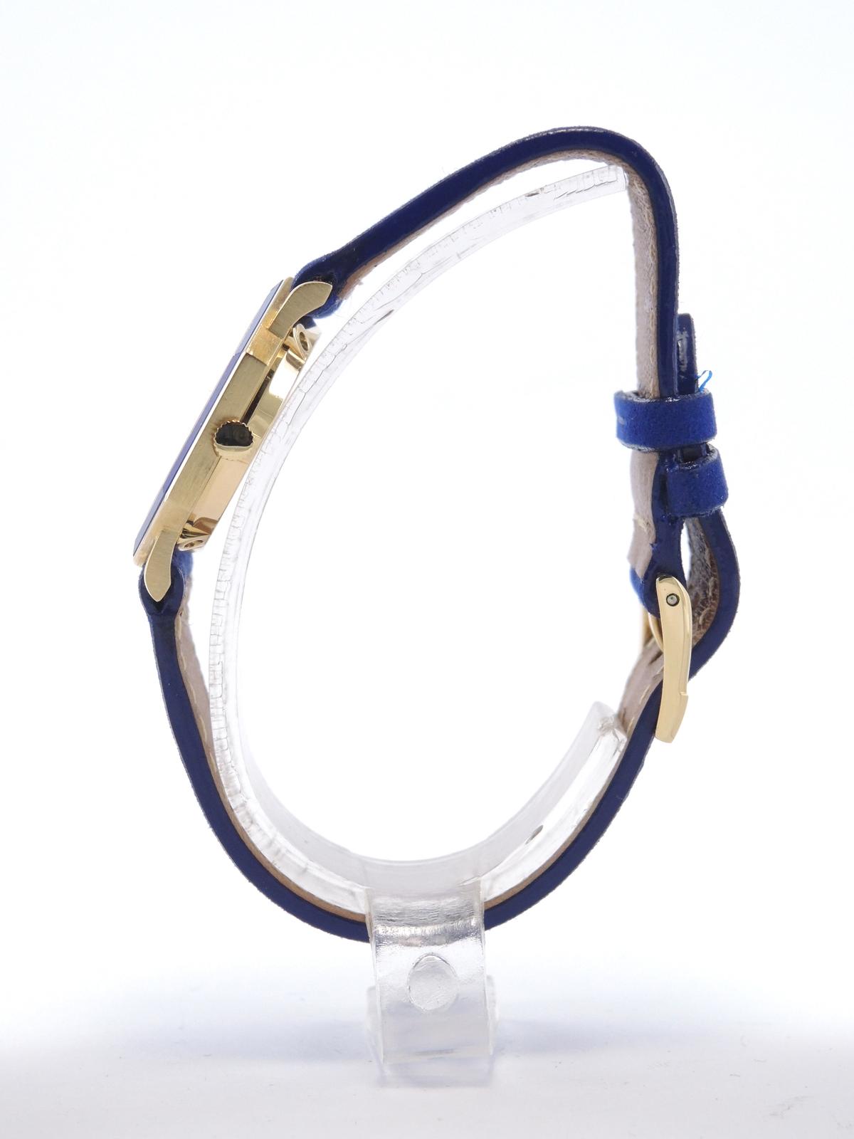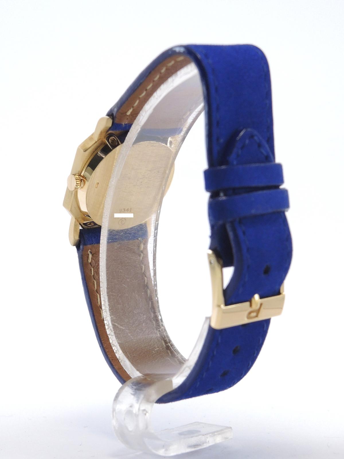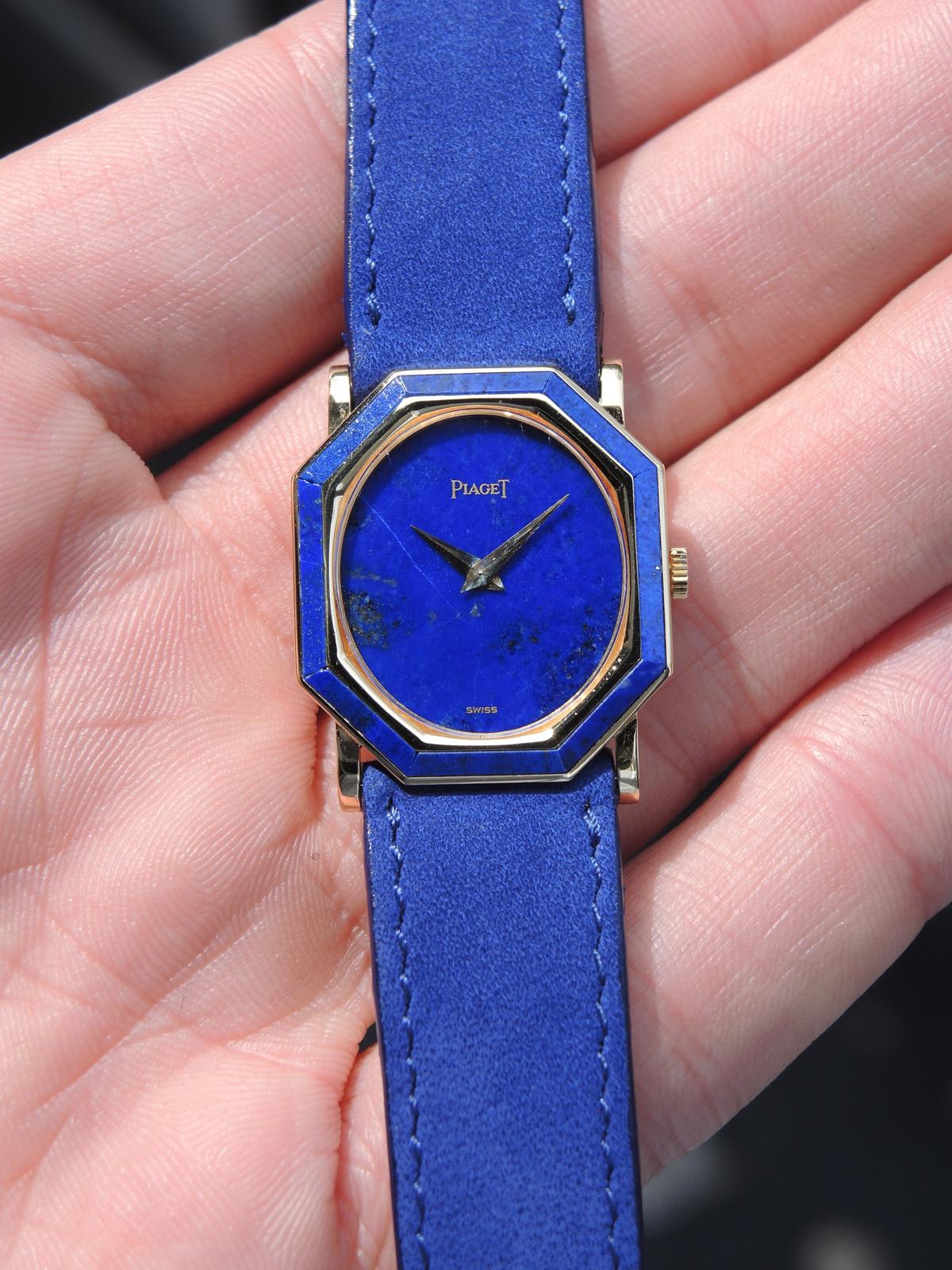 Octagonal Lapis Lazuli 9341 - Yellow gold case with Lapis Lazuli inserts, 24 x 26 mm, leather strap, original pin buckle, blue Lapis Lazuli dial, golden dauphine hands, mineral glass, hand wound movement.